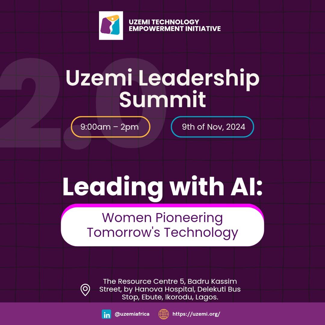 Hello Ladies! Uzemi leadership summit 2.0 is coming! Theme: Leading with AI: Women pioneering...